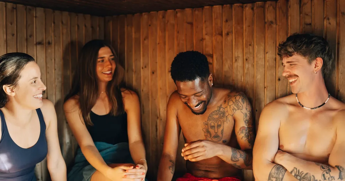 A corporate team-building program includes wellness days at the sauna to foster staff connection and reduce stress.
